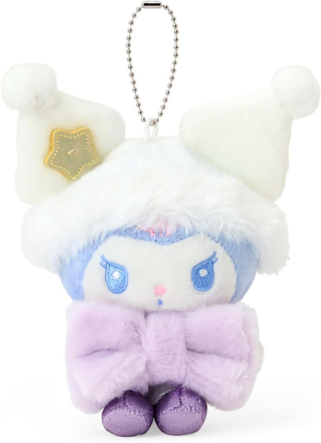 Enjoy the sparkling winter design series with Kiki and Lala at night sky. This fluffy hat has a large scarf, ready for a night sky. Looks cute on your bag or backpack