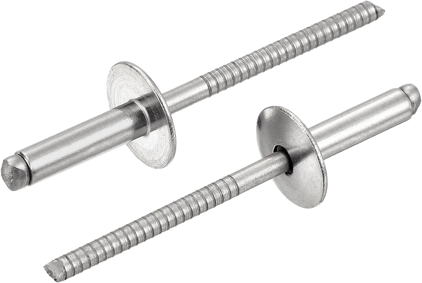 Description:Material - The large-cap open-end blind rivets are made of 304 stainless steel with a smooth surface, strong, acid-resistant, and corrosion-resistant. There is no need to worry about rust or breakage; they are suitable for long-term use.Design - Large cap round head blind rivets adopt a large cap design, providing a larger contact area, better load-bearing capacity on thin-walled materials, and enhancing stability.Easy to Use - Install a large flange round head rivet, insert it into the pre-drilled hole, and use a tool to pull the rivet until the core breaks, forming a stable and secure connection. Widely Applicable - Large flange round head rivets are widely used in automotive manufacturing (body panels), aerospace (aircraft structures), shipbuilding (hull connections), and construction (steel structures).Specification:Material: 304 stainless steelRivet Body diameter: 3.2mm/0.13"Rivet Body length: 6mm/0.24"Cap Diameter: 9.5mm/0.37"Cap Thickness: 2mm/0.08"Rivet Diameter: 2.1mm/0.08"Rivet Length: 29mm/1.14"Riveting Range: 0.04"-0.14"Packaging: 100Pcs x Large cap round head blind rivets