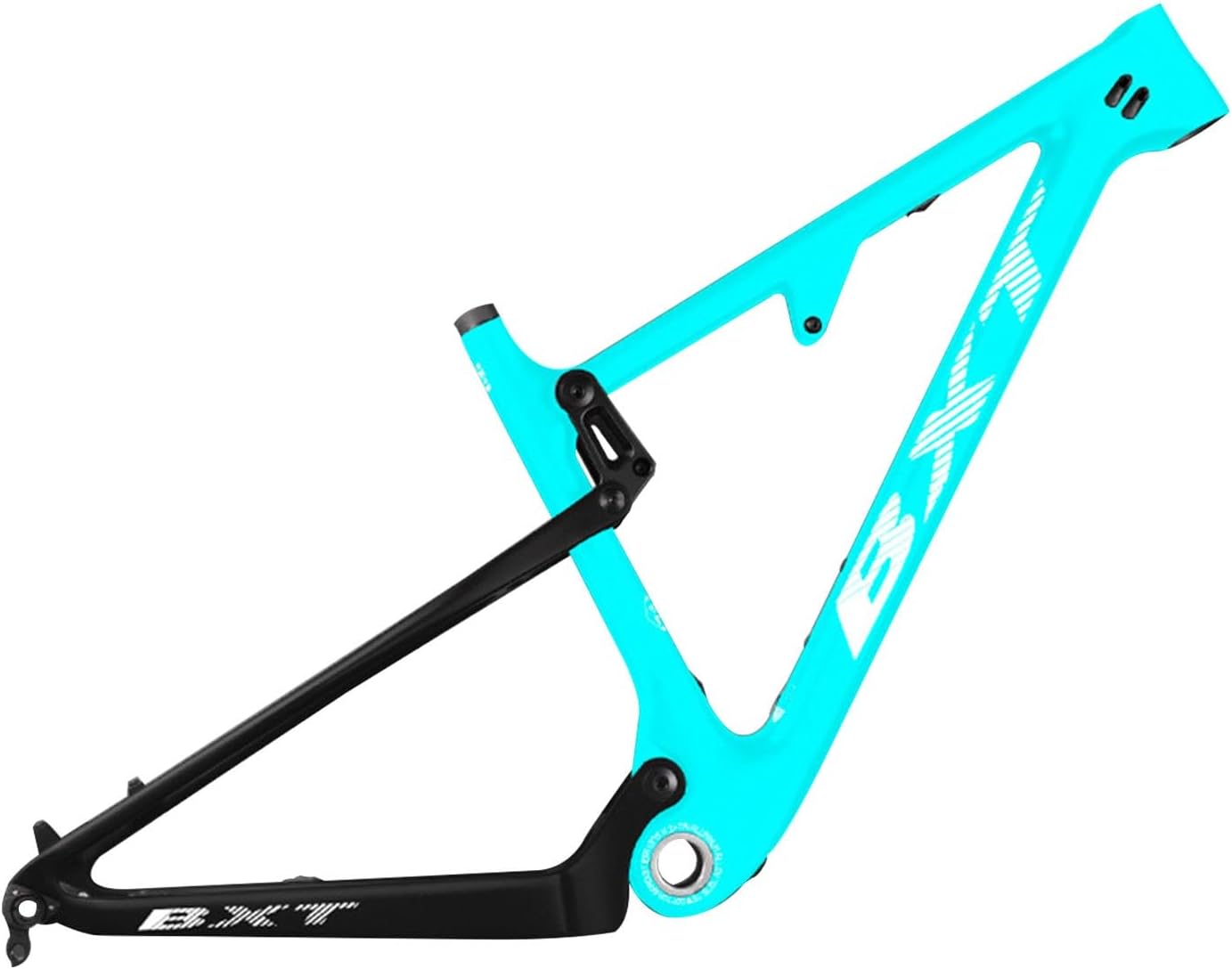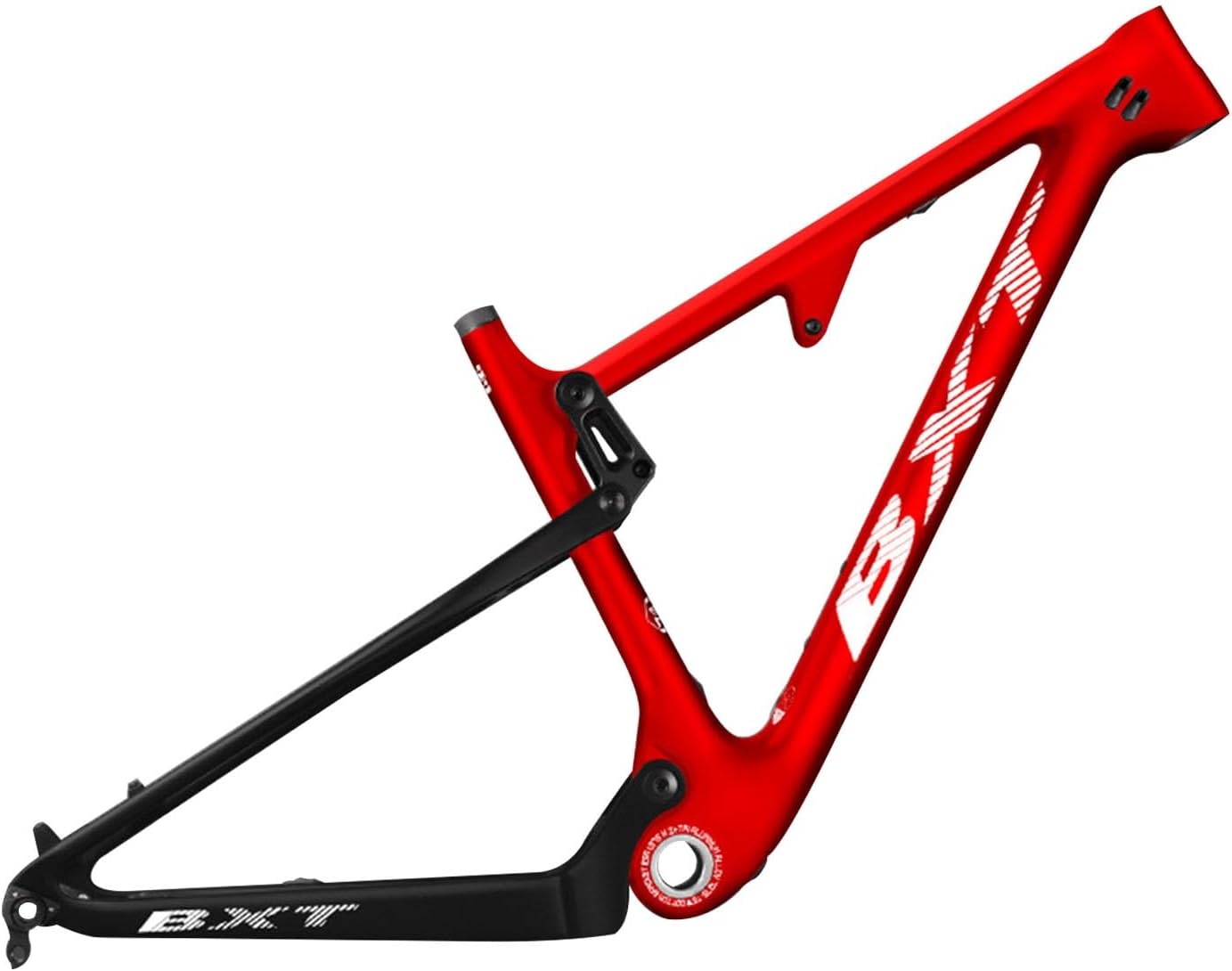 Full suspension mountain bike frame, 29ER Soft tail Disc brake bike frame, 9*135mm Quick Release/12*142mm Thru-axle Frame, Perfect gift for bike lovers, can be assembled with your friends.Product name: Carbon Fibre Mountain Bikes FrameFor wheel:29" wheelsSize: 16/17/18.5/20inch(S/M/L/XL)Frame Height: S-405mm; M-430mm; L-470mm; XL-520mm.Recommended rider height: S-160-170cm; M-170-180cm; L-180-190cm; XL-Above 190cm.Maximum tire width: 29*2.25"Level: XC/Trail/RaceMaterial: Carbon Fibre T700+T800Weight: about 2100±50gColor: Matte Black , White , Orange , Yellow , Gray , Green , Cyan , Dark Green , Silver , Red , Blue-1 , Violet , Brown , Pink , Blue-2Specifications: Headset: 41.8*52mmSeatpost: 31.6mmSeatpost Clamp: 34.9mmRear wheel travel: 100mmRear Axle Spacing: 9*135mm quick release/12*142mm Thru-axleShock absorber: Supports 165mm Shock absorberBushing: 22-22mmBottom Brackets: BSA BB73mmBrake: Disc Brake, Directly mounted with 160mm disc brake rotor.Cable : Full internal routing Package: ( NOTES: Shock absorber not included. )Frame + Rear Thru axle lever + Seatpost Clamp + Quick Release Tail Hook + Thru-axle Tail HookNOTES: Please check if the bike frame size is correct before purchasing.Service: If you have any product and service questions, please contact us and we will respond to you within 24 hours.